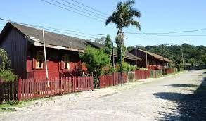 Casas construídas com materiais trazidos diretamente da Europa durante sua fundação, totalmente embalados, tendo apenas de serem montados.
