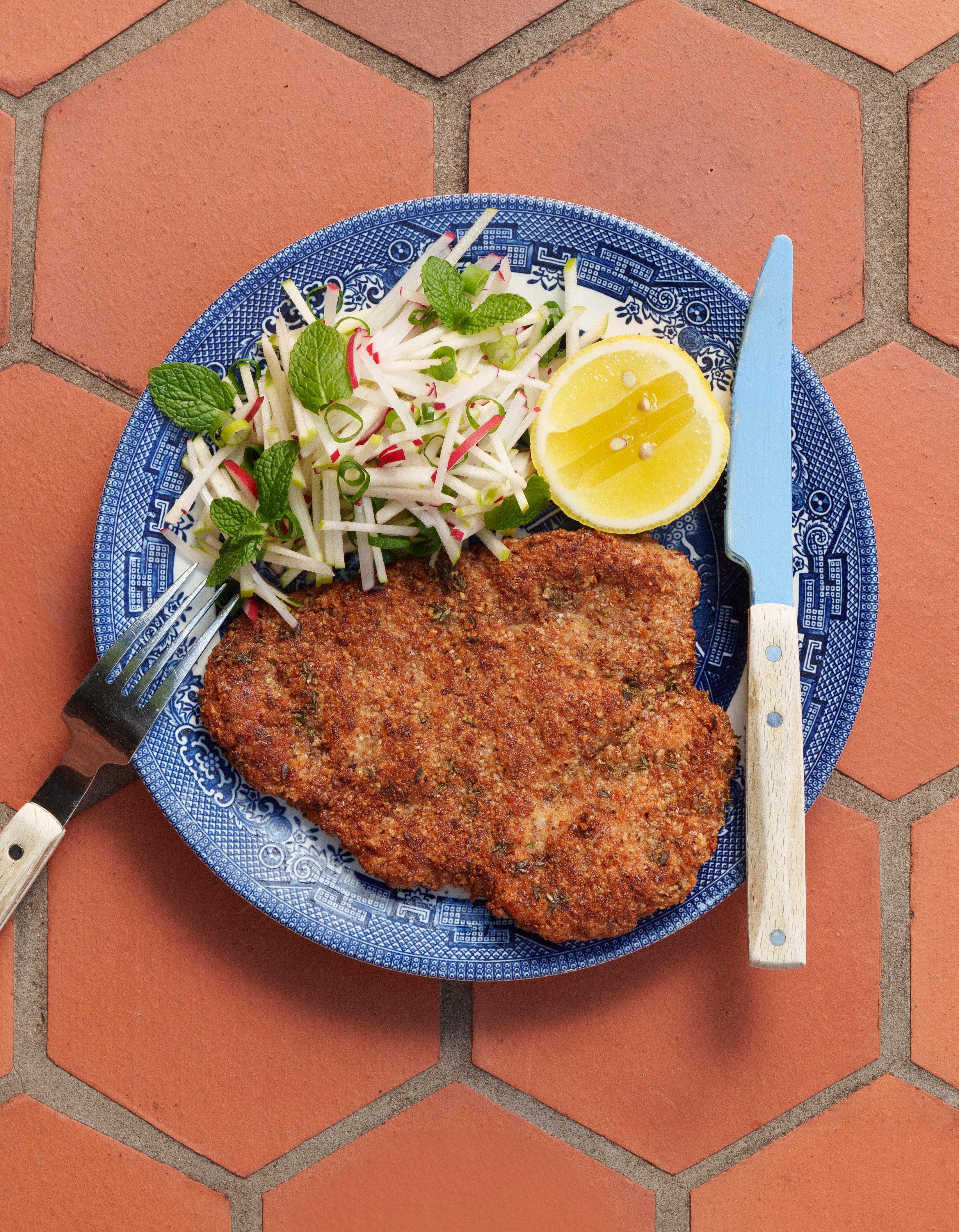 Pre-heat oven to 170°C fan forced. Line the base of a 24-26cm tart tin with baking paper. Lightly dust a 35cm length of baking paper with flour and roll the pastry into a 4mm thick circle. Carefully lift the pastry and transfer it to the tin, working quickly to tuck and press the edges into the inner corner of the tin. I like to use my thumb to press against the lip and smear away the excess pastry. Give the fluted edge another press to get rid of any air pockets and avoid shrinkage. Chill until hard, before baking for about 20 minutes or until golden. Cool on a wire rack.