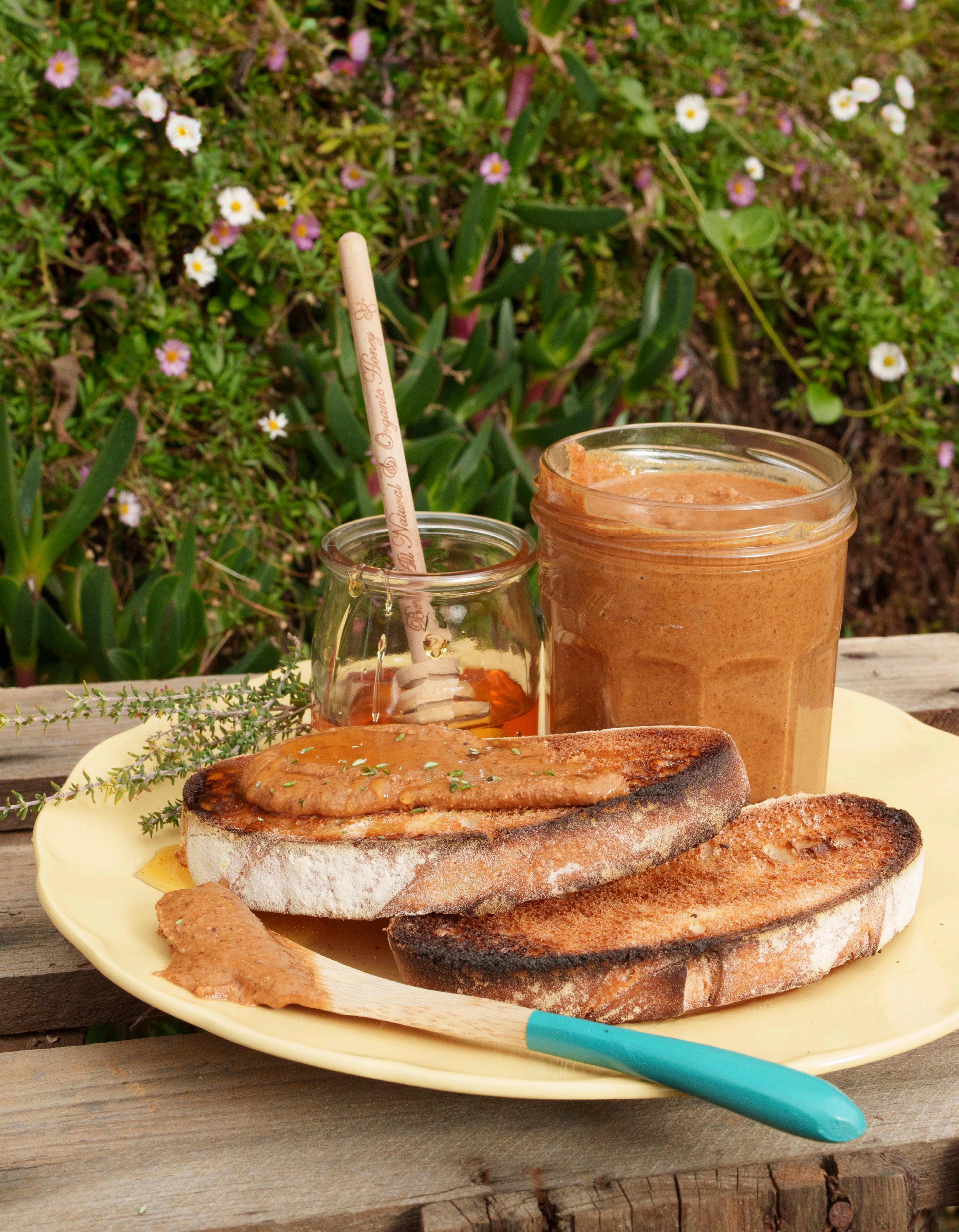 There are so many applications for almond butter. You can pop it on toast with honey, in a breakfast smoothie or in baking. I often fold it through my pastry custards for that rich, scorched almond flavour and it’s absolutely delicious. The lighter kind is more neutral and can be used for texture, thickening, enriching and bulking, in place of an ingredient like tahini. The process is incredibly simple, but you’ll need a decent food processor.