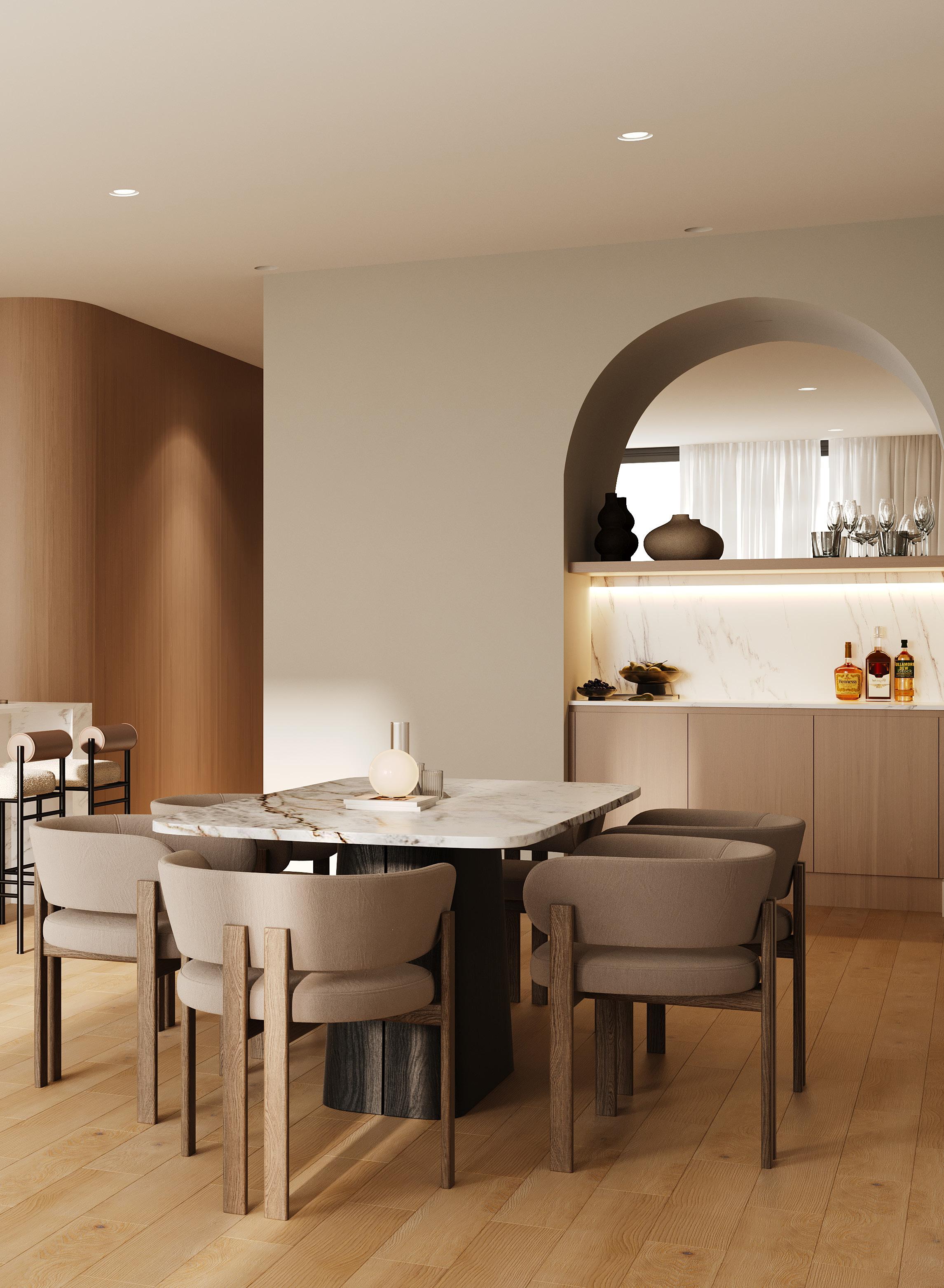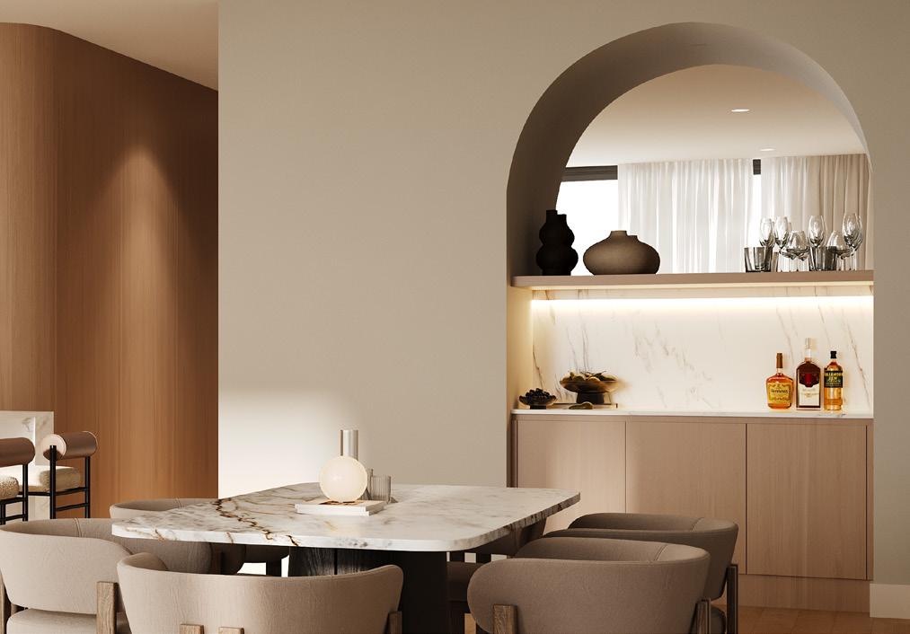 Catering to the entertainer’s lifestyle, Solstice features a luxurious bespoke bar, ideal for crafting cocktails, showcasing elegant barware and storing your finest wine. Meticulously appointed with premium finishes and enhanced by soft LED lighting, this refined space will elevate any occasion.