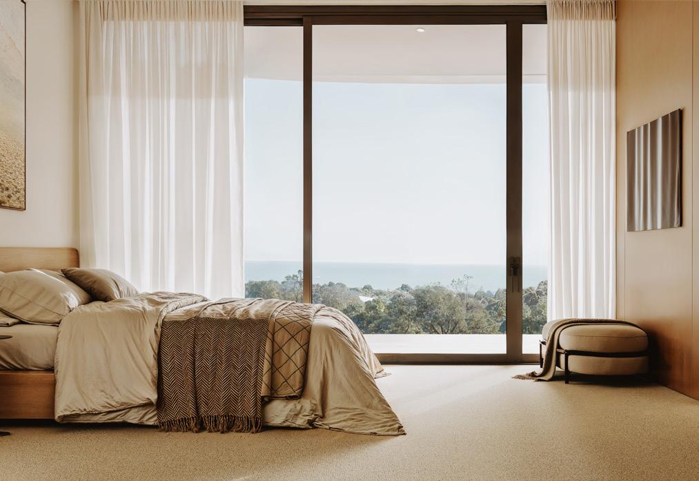 There’s an undeniable sense of beauty that comes with clarity of design. Awash with natural light and enveloped by expansive vistas, the interiors provide the perfect balance between tranquillity and timeless elegance. The palette is carefully curated, combining stone, warm timbers and bronze accents. There is a richness and tactility to the materiality that, whilst understated, cultivates an atmosphere of comfortable luxury.