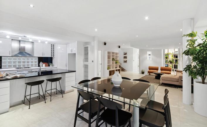 Home cooks will marvel at the sleekness of the luxurious neutral kitchen complete with glass splashbacks, 900mm La Germania gas cooktop, rangehood, dishwasher, island bench with breakfast bar and infinite storage, a feature skylight showcasing it in all its glory.