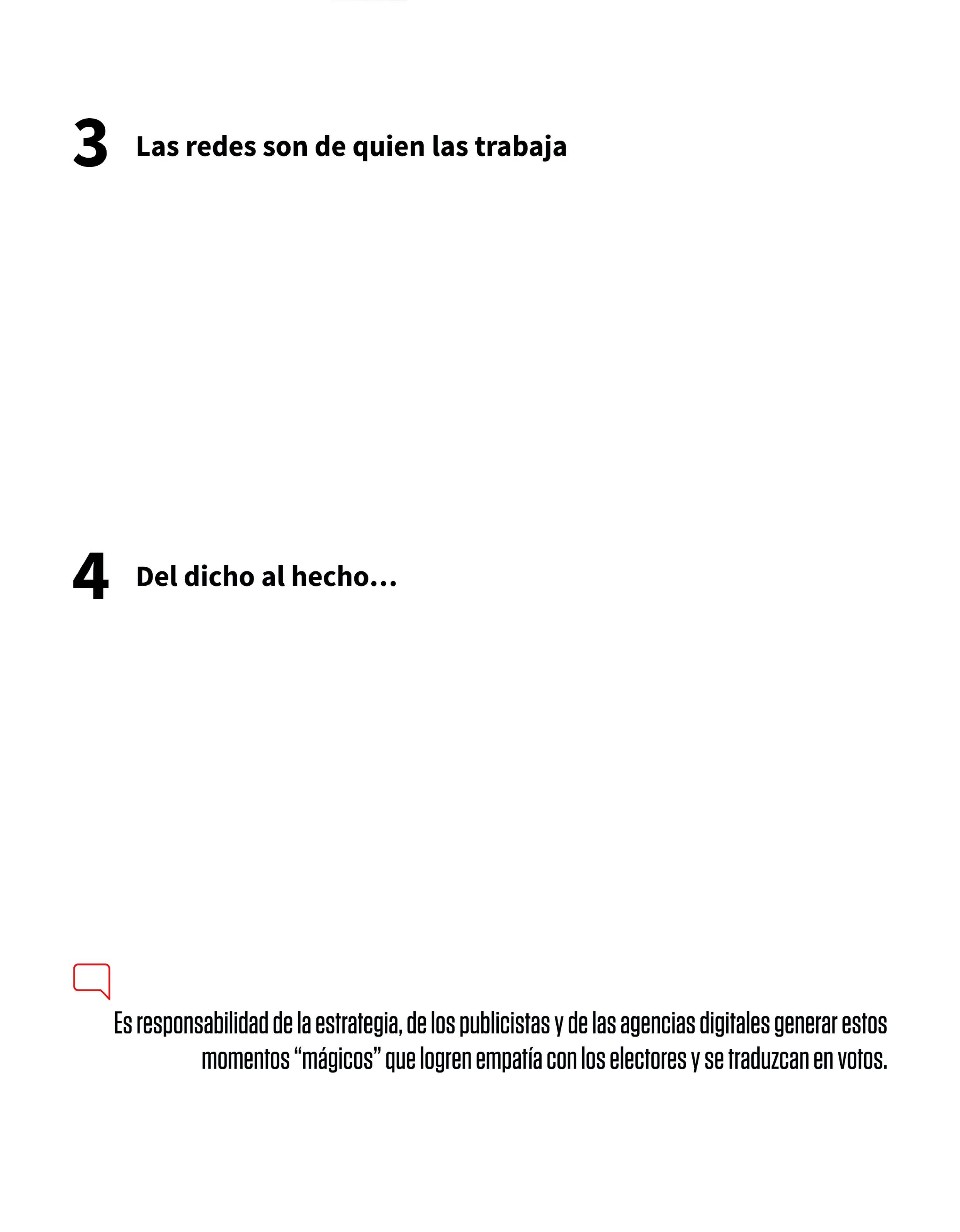 Después de doce años de experiencia, nos queda muy claro que si el equipo del candidato y el candidato no creen en las redes sociales, recíprocamente las redes sociales no creerán en ellos, son “matemáticas simples”. Tienes que dedicarle tiempo a construir vínculos digitales con los electores.