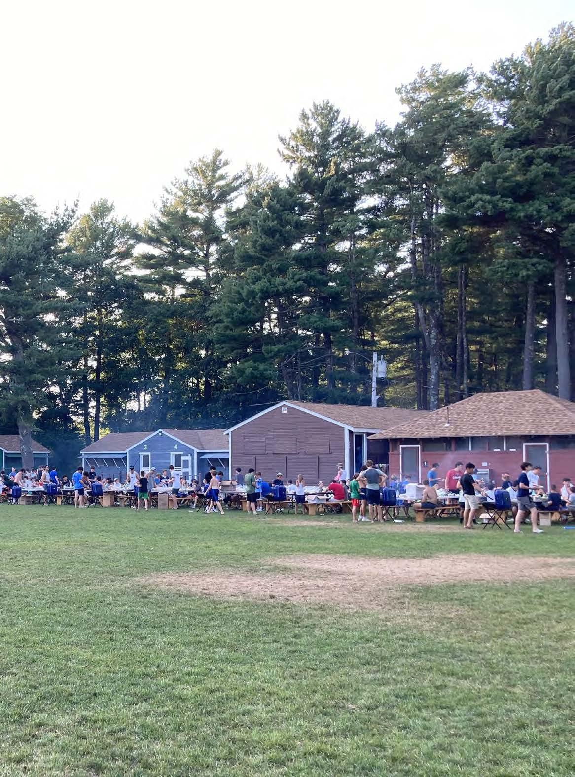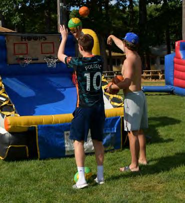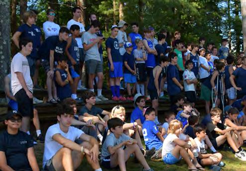 As the campers poured in on opening day, there was one thought that loomed over everyone’s minds: opening night Flagrush. Lineup blew, the evening activity was announced, and the campers eagerly waited to hear their teams. However, the campers most excited were the 2K21 14ers, who had got to camp early and were preparing since the day before. As Joco and Drew Macgilpin grabbed the megaphone and said that night’s evening activity was “ agrush,” the anticipation and excitement could be felt radiating throughout the Mess Hall. The captains for Blue were Sam Peljovich and Jacob Demeo, and Matt Brayer and Gaby Goldberg for White. The captains explained the rules of ag rush to the new campers, and the Freshman-Sophomore quarter kicked o . Matthew Li-Yang scored the rst ag of the summer for the Blue Team with a ruthless juke move against four defenders, but Max Ginchar responded with a ag of his own for the White Team. The rst quarter came to a close, and the Juniors and Seniors entered the playing eld. The White Team’s powerful defensive duo of Gaby Goldberg and David Satlo halted all of the Blue Team’s o ensive plans, and Matthew Brayer scored an impressive ag after breaking Sam Peljovich’s ankles and diving over the line for the score. This encounter between Brayer and Peljovich ended di erently than what had happened in the previous Color War, which included Peljovich forcing Brayer to slip during a rush in one of the most important moments of his Avoda career. Despite White Team’s initial dominance, their defensive stands could not resist Benny Hasenberg and Avery Kalish’s rushes. As regulation ended, the White Team was up by one ag, which forced overtime rushes. If the Blue Team scored on their rst rush, it would tie the game. If the White Team stopped the rst rush by Blue, then they would win the game and go right to second base. As the Blue Team went to sit on the Rec Hall stairs and the White Team went to the porch of Bunk 10, a wave of intensity pulsated throughout the camp. Blue chose Jacob Demeo to carry the ag and Sam Peljovich to lead block for him. White chose David Satlo , Richard Brayer, and Tyler DeRosa as their main defenders. While Captain Gaby Goldberg would’ve been one of the lead defenders for White, he unfortunately went down with a wrist injury after exchanging hits with Benny Hasenberg in the middle of the game. Because of this unfortunate injury to a top player on his team, David Satlo knew that he had to step up and make a play. He did, making the game-winning tackle on Jacob Demeo inches from the line. Opening night ag rush was over, and White celebrated their victory by sprinting to second base and chanting “We’re number one!” “We’re number one!”