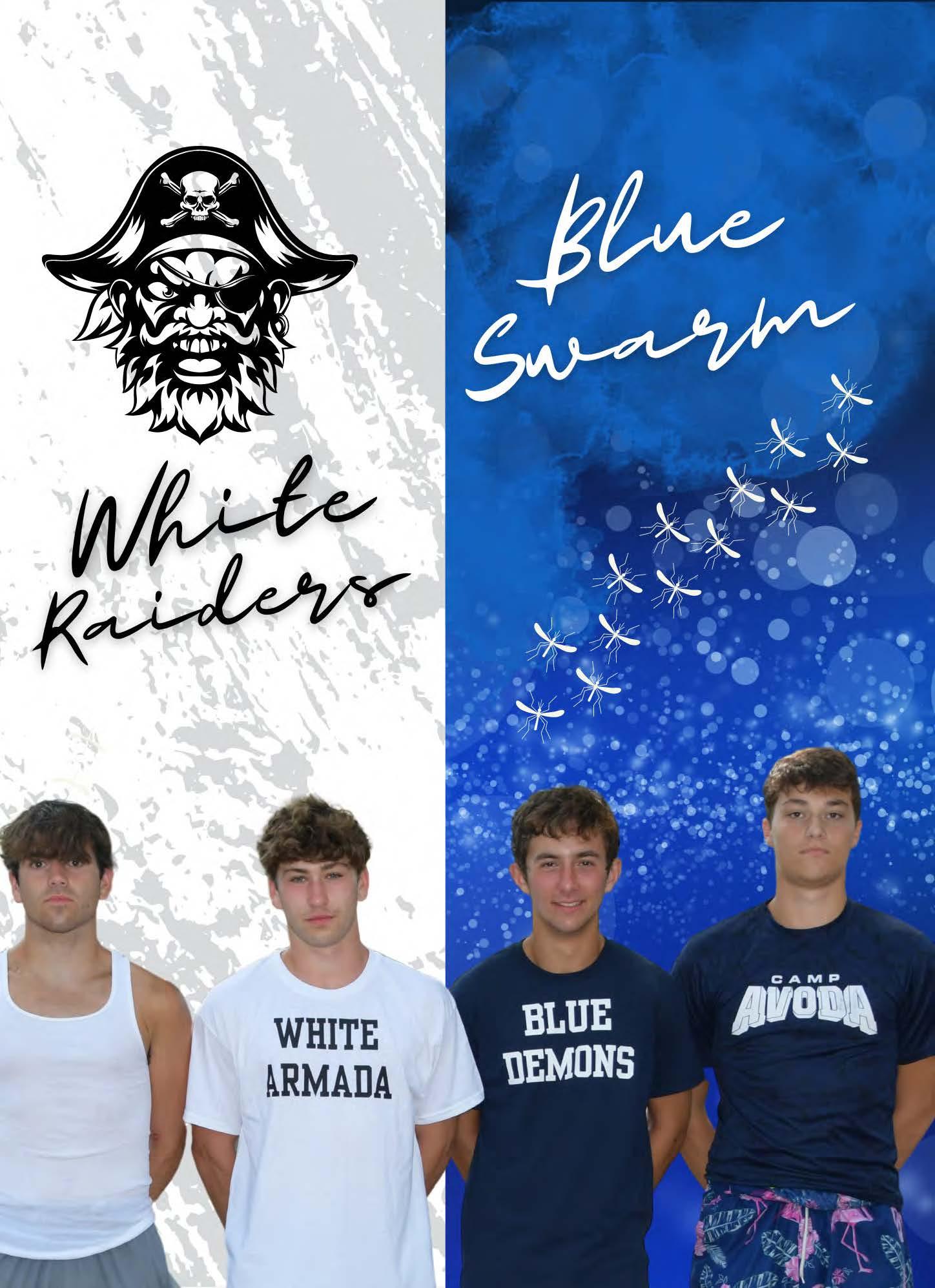 Desert War 2022 will go down as one of the best in Avoda History. As the rst month winded down, the amount of mock drafts and excited campers went up. On the last Wednesday of the rst month, the Red Trouser Show came to camp and put on a spectacular show for the evening activity. Their awe-inspiring tricks ended with what they called “one nal surprise.” Anticipation swelled throughout the camp, as some campers thought that the nal trick would be the Desert War break. They were right, as the nal surprise had the two performers and a few sta members take o their shirts to reveal a shirt under that said “it’s Desert War!”. Campers, however, were eager to know their teams but were told to go to bed and wait until lineup tomorrow to hear the o cial teams. All of the camp went to bed early that night to energize themselves for the next day. By the time lineup came the next day, the excitement was almost too much to bear. But it was nally time. Bunk 14 had been waiting for their 14 Desert War ever since they were young freshmen at Avoda. As the teams were read by Danny Blumenstein and Ethan Shifman, the only four names not read for 14 were Gaby Goldberg, Jacob Demeo, Sam Peljovich, and Matthew Brayer. All four of them knew this meant they were going to be captains, and made their way to the mess hall for their pathwalk. These four were the rst to walk down the path, in which they huddled up and ran to their teams. Gaby Goldberg and Jacob Demeo were the captains for White, while Matt Brayer and Sam Peljovich were on Blue. The teams learned their names from their rst lieutenants: the White Raiders and Blue Swarm. Raiders General Sawyer Busny and his team stormed to the lodge, while General Zach Goodgame and his team swarmed to the Rec Hall for organization. Each team discussed their strategy, and the captains led their teams to the eld to stretch and hear the reading of the rules. The Raiders strategy was to send opening rushes in every period, and they did so to start o the game. However, the Swarm’s powerful defense, led by Sam Peljovich and Eric Friedman, quickly shut down the rst rush. A counterrush was sent by the Swarm, but that was also shut down by the valiant