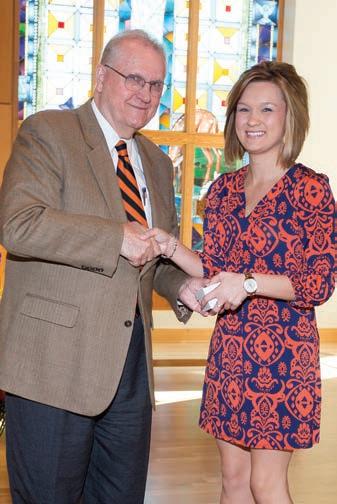 Provost and Vice President of Academic Affairs Dwaine Greene was honored in September with the J.A. Campbell Meritorious Service Award, just weeks before he took the job as new president of Georgetown College in Kentucky. Greene shared tearful good-byes with co-workers, family and friends at a small ceremony at Marshbanks Hall. “I don’t know of anybody who qualifies more for the J.A. Campbell Meritorious Service Award than Dwaine Greene,” said Campbell President Jerry Wallace. “We’re proud of him because of his inherent goodness and the way of life he brought to Campbell. He led us through several difficult accreditations during his time here, and he was not only my neighbor here, but my right-hand man. He certainly has a special place in all of our hearts, and we wish him well.”