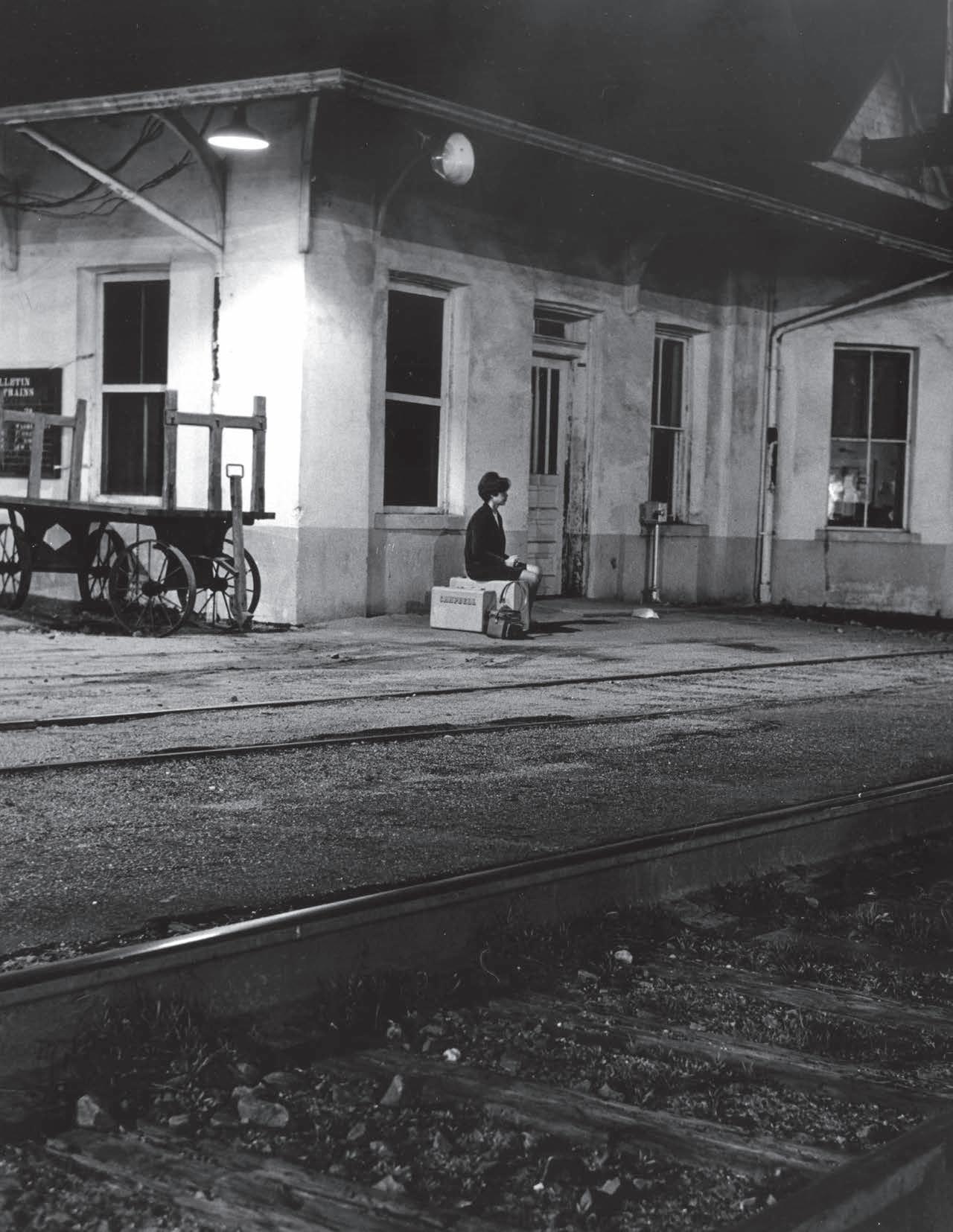 Patrica Goodwin ('68) sits at the Dunn train station for a Pine Burr Yearbook shoot in 1968. Another photo from this shoot was used in that year's publication to signify the end of the school year.