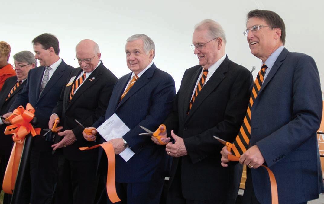Campbell formally dedicated Pat Barker Hall — which had been known simply as “the new residence hall” for three years — much to the surprise of Barker, who had to be strategically led in through the building’s south entrance so she wouldn’t see her name on the 48,000-square-foot freshman dormitory.