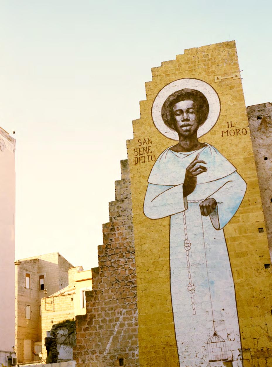 El artista y pintor que da vida a las fachadas de Palermo con los santos tradicionales de la isla.