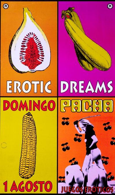 Pep Pilot es un coleccionista que ha recopilado un archivo de carteles que abarca décadas. Pep tiene ahora sesenta años, pero conoce muy de cerca la historia de la vida nocturna de Eivissa desde los años setenta. Antes, las fiestas no eran tan frecuentes como ahora, cuando hay algo cada noche. Por eso, los pósteres tenían una vida más larga y su impacto era más significativo, su eco resonaba de pueblo en pueblo. Quienes diseñaron estos carteles son artistas por derecho propio. De la época dorada de la noche ibicenca surgieron nombres tan conocidos como