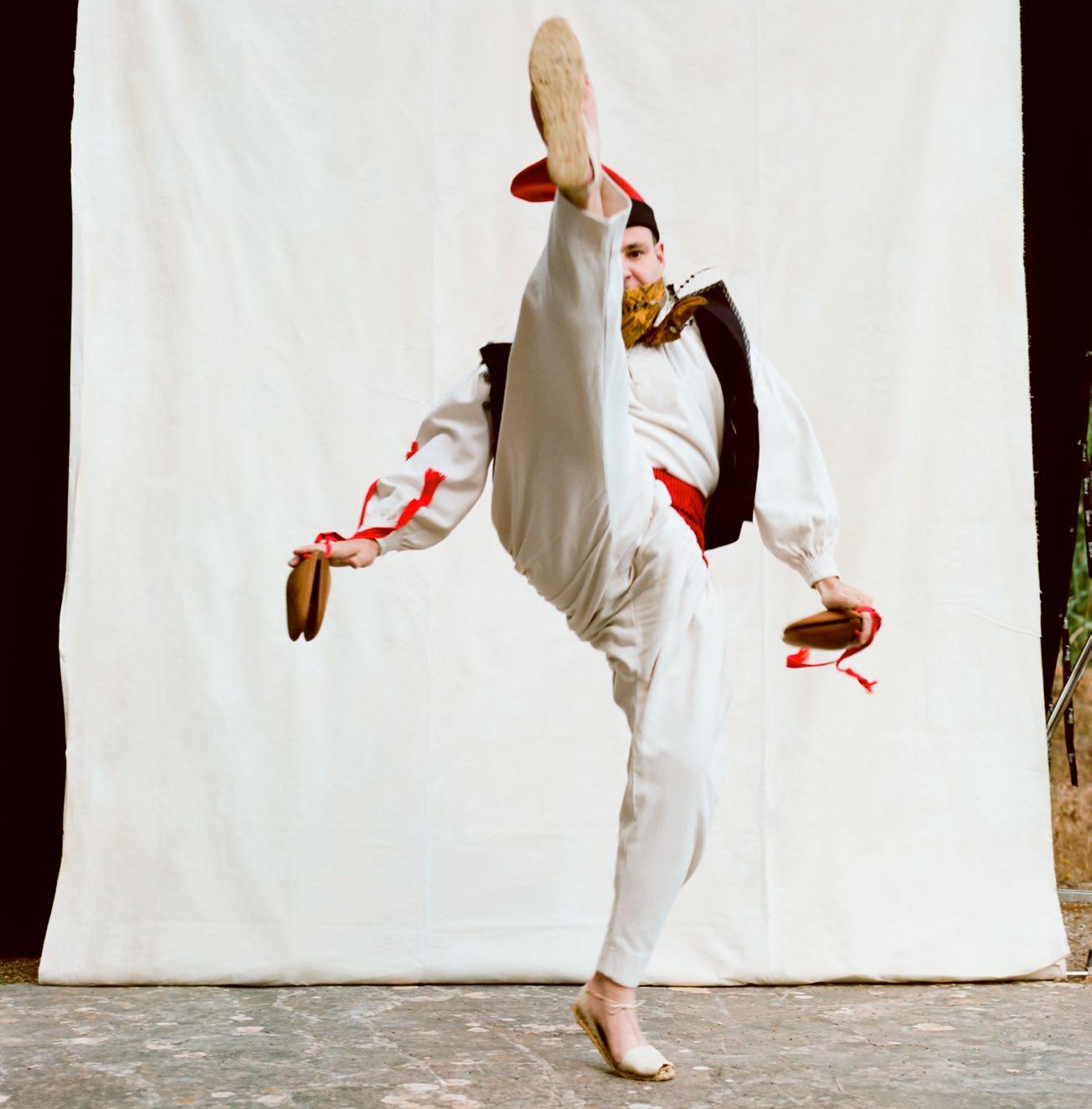 Un hombre vestido con todo detalle, con prendas de algodón blancas y negras y accesorios rojos, toca dos castañuelas al ritmo de una flauta. Da saltos al bailar, incluso levanta una pierna por encima de la cabeza. Lleva unas espardeñas. Delante de él, una mujer se mueve con pasos pequeños y ágiles que contrastan con los suyos. La trayectoria de la mujer traza un ocho. Sus elaborados atuendos están adornados con joyas, sobre todo el de las mujeres. Como señal de opulencia, llevan hasta 24 anillos y un collar típico ibicenco que se llama emprendada y que está hecho de oro, plata y coral. Es el ball pagès, un baile tradicional de Eivissa y también del resto de las Pitiusas. Simboliza un ritual de seducción, pero los mayores de la isla nos cuentan que en realidad no es tan antiguo: sus orígenes se remontan «solo» al siglo XIX.