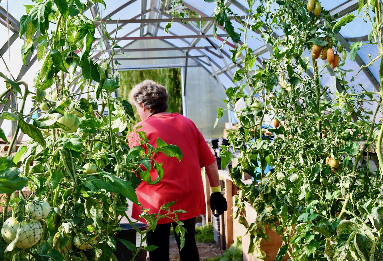 Lately, Christina Bould has been tending to a number of vegetables in a raised bed that was built by another community member. Her late August bed includes basil, lettuce, tomatoes, cucumber, and some spinach seeds that hadn’t germinated yet.