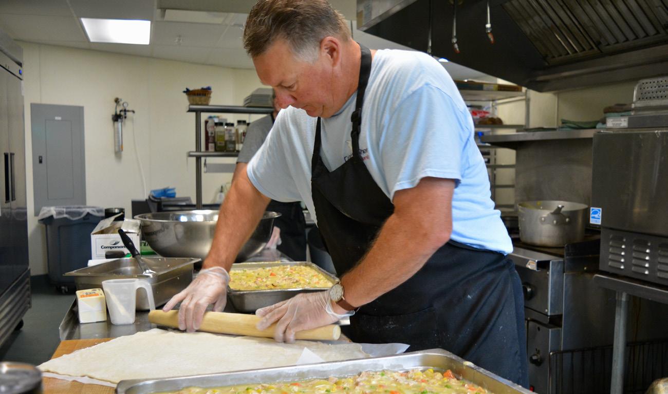 Just as Emmy, Suzette, and Meg said their farewells, Suzette perked up in time for lunch in the cafeteria. It was fresh chicken pot pie prepared from scratch that morning—a perfectly comforting and nutritious dish to enjoy among friends.