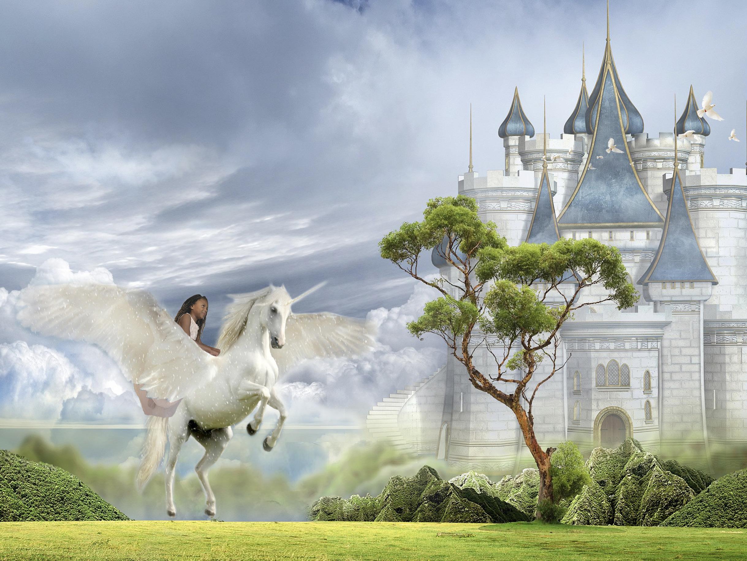 She gasped as the teeny, tiny unicorn in her hand grew into a dazzling being full of light. His little prancing movements turned into a graceful beat of giant wings. He took flight in the cavern as his feathers found freedom for the first time in ages. He landed nearby and trotted up to her, stopping just in front of her face and gazing into her eyes. She would have been scared, or at least a little nervous, but she wasn't. For one look in the unicorn's eyes told her that she did not need to be afraid. With his majestic power was also a kindness that made her feel safe.