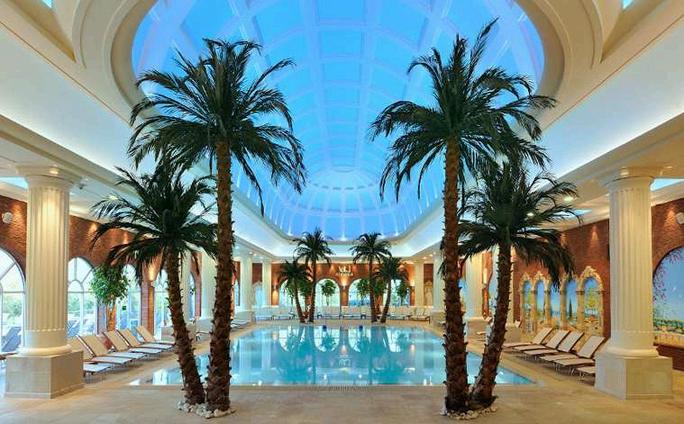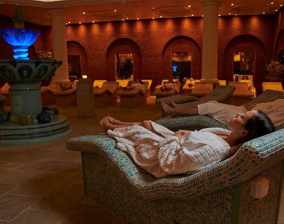 TheColosseumSuitehasamajesticdomedceilingfullof starsandatherapeuticbalneotherapypoolbeneath The Tepidarium,fullofwarmstoneloungers,isaperfectspotto lieback,closeyoureyesanddriftoffforawhile Thereare minispa-poolsintheSpaGarden-agreatplacetosharea celebratoryglassoffizz.