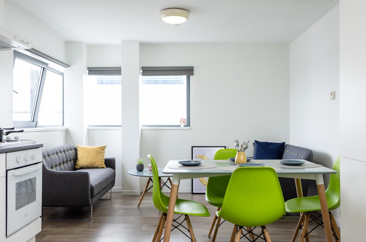 There are around 500 en-suite rooms available, with each flat consisting of six or seven bedrooms, all with a shared kitchen and living area.