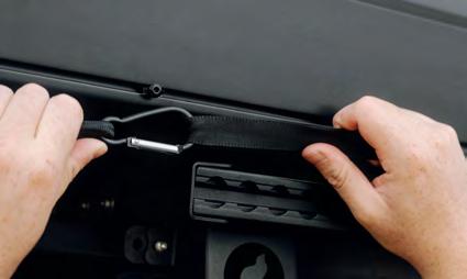 6. Bevestig de ladder aan de ladderhouder en vergrendel de zes snelsluitingen in de tent bovenaan de linker- en rechterwand.