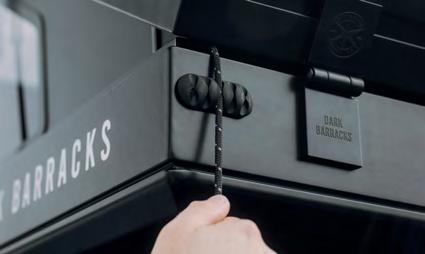 Dark Barracks maakt gebruik van hoogwaardige materialen die speciaal zijn ontwikkeld voor buitengebruik. Daartoe behoren bijvoorbeeld robuuste, waterdichte materialen, die extreem goed bestand zijn tegen krassen en slijtage.