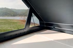 De daktent kan nu nog veiliger worden bevestigd: de stabiliteit is vergroot door onder de tent een rail met dubbel sluitsysteem te plaatsen. Bovendien maakt de brede dwarsdoorsnede van de rail in combinatie met de vlakke hoogte offroad rijden mogelijk.