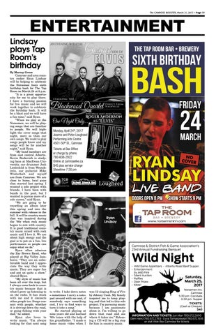 Camrose and area country rocker Ryan Lindsay will be helping to celebrate the Norsemen Inn’s sixth birthday bash for The Tap Room on March 24 at 8 p.m. “It is a great opportunity for me to play there. I have a burning passion for live music and we will work together to celebrate the birthday bash. It will be a blast and we will have a fun time,” said Ryan. “When we play at the Norsemen, we will be playing songs that are familiar to people. We will highlight the cover songs that night, more so than our own songs. We want to play songs people know and my songs will be for another night,” said Ryan. “My band members are from east central Alberta. Kevin Beckovich is studying bass at MacEwan University, our drummer Josh Littlechild is from Wetaskiwin, our guitarist Mike Winterhalt and myself are from Camrose. We are close to home, local guys that started last spring. I wanted a solo project with friends. I have been with bands in the past, but I wanted to pursue more of a solo career,” said Ryan. “We are going to be recording an album later this spring and into the summer with release in the fall. It will be country music that was inspired during the ’90s when rock music began to mix with country. It is good traditional country music mixed with rock music and I love it. We are about high energy and the goal is to put on a fun, live performance so people can enjoy what we do.” Ryan often admires the Zac Brown Band, who played at Big Valley Jamboree. “They are an unbelievable band and I appreciate the way they write music. They are super fun and put on quite a show,” shared Ryan. “My style of music has been all over the map, but I always come back to country music because that is what I grew up listening to on the radio. It has stuck with me and it connects other people too. Songs connect with people, whether it is driving down the road, or going fishing with your dad,” he added. Ryan also loves to write music. “I’m always looking for that next song