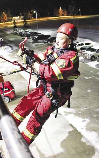 On December 10, members of Camrose EMS (under the umbrella of Alberta Health Services), braved the chillier winds to accept donations for the Camrose Neighbor Aid Center, Food Bank during the annual Stuff an Ambulance event. Pictured left to right are Safeway employees, assistant manager Al Paquette, James Macki, Teresa Kuefler and Justin Sitler, handing over prepackaged food bags donated by Safeway customers to EMS members, left to right are Devon Havinga, Karissa Burnstad and Laura Rinas.