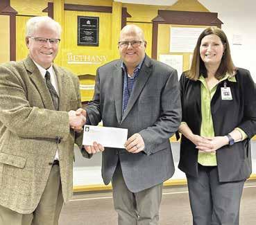 Battle River Community Foundation board member Alex Oliver, left, presents a cheque to Pastor Kevin Schwartz, chaplaincy coordinator, and the executive director of The Bethany Foundation with Carla Beck, The Bethany Group’s CEO.