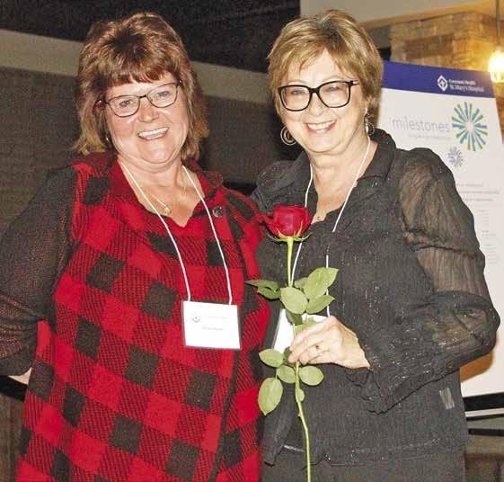 • Gwen Sheets and Marge Knutson were recognized for five years of service to the Camrose and District Home Support Board. Bill Minor presently serves as Chairman of the Board.