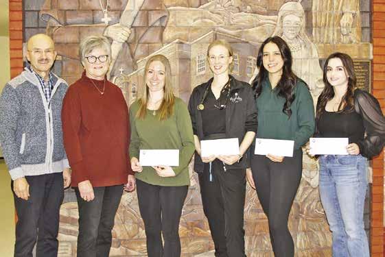 St. Mary’s Hospital Camrose Foundation board members Darren Lockhart and Carolyn Andersen, left, presented education grants to Covenant Health St. Mary’s Hospital Camrose employees, from third left, Rachel Sanders, Ken Winder, Destiny Johnston and Kelsey Cotton, to assist with education costs. The Foundation is committed to supporting the growth and development of staff by funding educational scholarships and learning opportunities that enhance service delivery. The Foundation awarded a total of $11,853 in education grants to 13 staff members.