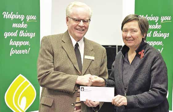 • Eve Ally Belanger presented a $1,000 donation to Brigantia Place, a Camrose Society for a Women’s Shelter in memory of her mother Leslie Ally. Brigantia Place Volunteer Coordinator Donna Getschel accepted the donation, which will go towards a retreat for staff at the shelter