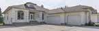 An updated concrete driveway leads to the large garage, and the covered front entry welcomes guests into a spacious foyer and living area.