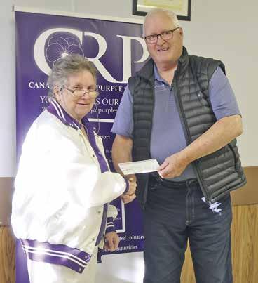 Adan Shaikh, Camrose Booster Camrose Royal Purple donated $500 to the Hospice Society of Camrose and District. From left, Royal Purple member Velma Babiuk presented the cheque to executive director of Hospice David Samm.