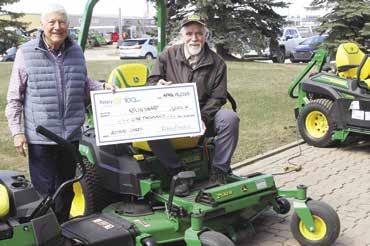 Murray Green, Camrose Booster Camrose Rotary member Don Rebus presented winner Kevin Sharp with $1,000 after his name was drawn in the Rotary Cares draw. Kevin said it pays to support local Rotary projects in the community.