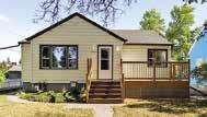 This well-maintained detached bungalow welcomes you into the home through a spacious front yard, with a newer front deck framed with a white picket fence, all-concrete walkways, and an accessibility ramp. The living room is fitted with hardwood flooring on the main level and a gas fireplace.