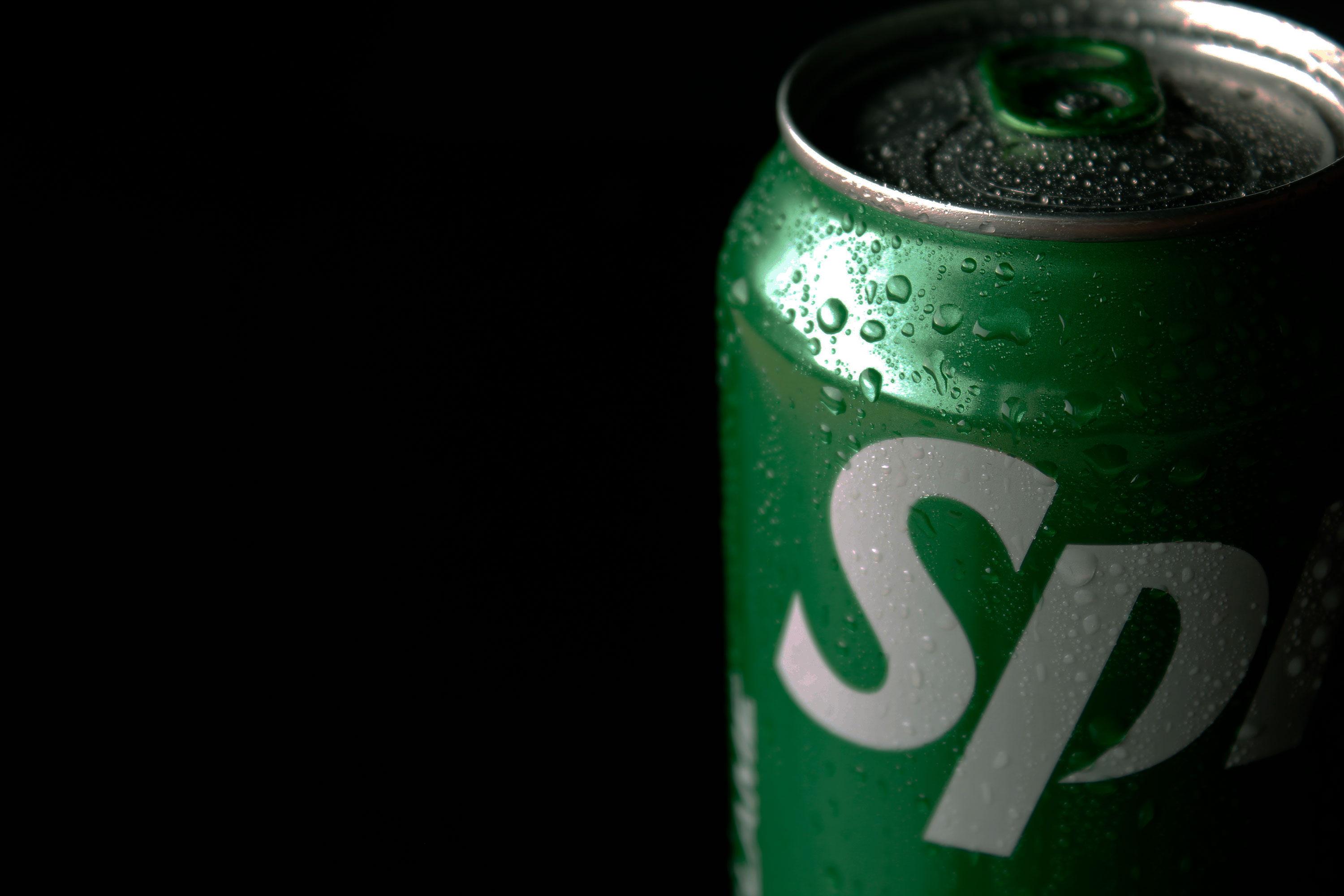 La revista presenta una fotografía de una lata de Sprite fría, con gotas de condensación que resaltan su frescura. Sobre un fondo claro, el verde brillante de la lata y el logo icónico captan la atención, evocando una sensación refrescante y chispeante ideal para cualquier momento.