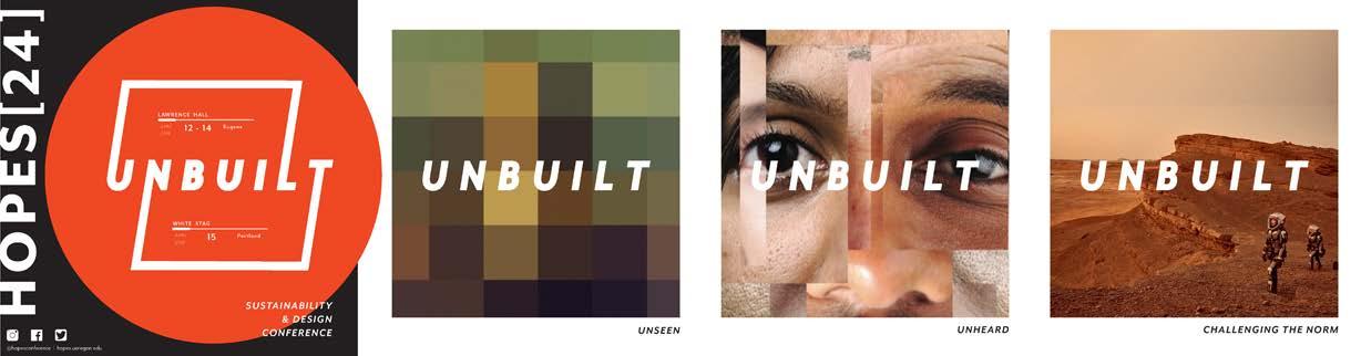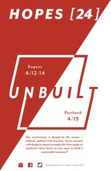The HOPES Conference is an annual event, held by the Ecological Design Center and is a fully student run group at the University of Oregon. The conference is an opportunity to discuss the relationship between ecology and various design disciplines, and how we can produce sustainable solutions to contemporary problems. The conference consists of panels, keynote speakers, workshops, exhibitions, and excursions. My role as Branding Director was to create a Brand Identity and Strategy designed specifically for 2018’s theme (Unbuilt). HOPES 24 also partnered with Design Week Portland during 2018. Adobe Illustrator • Adobe Photoshop • Branding • Graphic Design • Strategy • Leadership • Organization • Volunteer Work