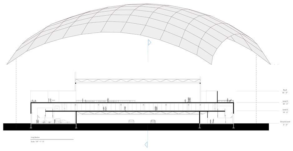 Hand Sketching • Rhino • Revit • Lumion • 3D Modeling + Rendering • Adobe Photoshop • Adobe Illustrator • Adobe InDesign • Diagramming • Model Making • Site Visits • Research • Teamwork Brian Squillace & Sophia Austrins Course: PLAN - LEVEL 1 PLAN - LEVEL 2 PLAN - LEVEL 3 PLAN - LEVEL 4 PLAN - TECH RAMP TECH RAMP DIAGRAM CONCEPT MODEL CONCEPT MODEL 12