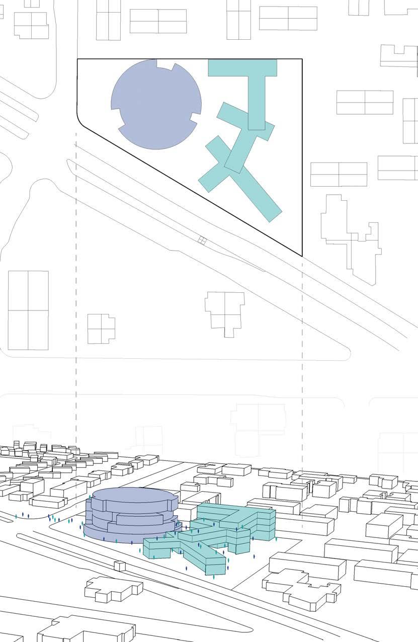 Hand Sketching • Rhino • VRay • Lumion • 3D Modeling + Rendering • Adobe Photoshop • Adobe Illustrator • Diagramming • Model Making SITE PLAN AND PROGRAM SECTION 1 SECTION 2 DIAGRID