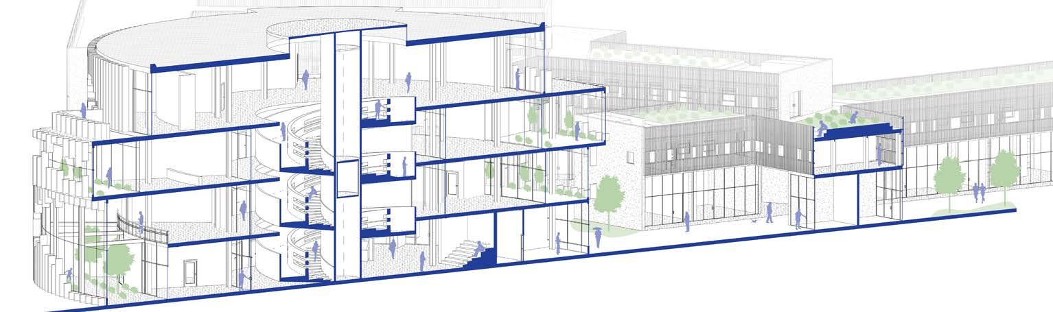 About: Library This project will take two building types that are essential for successful communities - affordable housing and libraries - and plan a hub site in East County to spark future investment in healthy urban development. The project aims to develop a holistic campus that anticipates what the future holds for these building types in our radpidly evolving modern society. This project was in collaboration with Eli Metcalf who focused primarily on the Affordable Housing element.