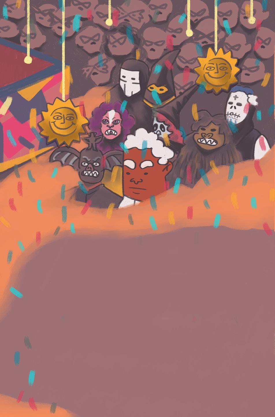 Isso tem sim tudo a ver com o seu baile, Palhaço! Se não cuidarmos das raízes da nossa festa, vamos esquecer o porquê estamos aqui. Vamos perder toda essa diversidade linda que estamos vendo agora. Impedir que alguns participem desse festejo só vai contribuir para o esquecimento de todos nós, inclusive de seu baile de máscaras. Por isso aconselho que todos aqui brinquem e celebrem o Carnaval, como forma de manter viva as tradições e memórias dessa grande festa. E para provar isso convidamos vocês também para virem à rua conosco! – discursou a Caricata, em meio a uma salva de palmas de todos que estavam no salão.