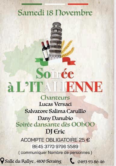 • Septembre 2023 • LE CAN-CAN n° 369 • Page 1 Michel Mégane Florence Amandine Dimitry Ouvert le MERCREDI, JEUDI, VENDREDI, SAMEDI SOIR, DIMANCHE Fermé le LUNDI, MARDI et SAMEDI MIDI | Parking aisé. Venez fêter les 20 ans du Bouche ! Oufti 20 ans déjà ?! DEPUIS 1 98 9 www.CAN-CAN.be MENSUEL D’INFORMATIONS RÉGIONALES ET COMMERCIALES CAN-CAN Rue Solvay, 4 | 4100 Boncelles • 04 336 85 14 • info@leboucheaoreille.be Le Bouche à Oreille • le_bouche_Boncelles www.leboucheaoreille.be N° 369 septembre 2023