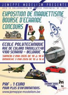 une exposition de modélisme les 2 et 3 mai 2026, à l’école polytechnique, rue Colard Trouillet, 48 à Seraing. Notre exposition est ouverte à tous les genres de modélisme (avions, véhicules militaires, bateaux, véhicules civils, maquettes en bois, figurines, toons, etc.) et à tous les publics.