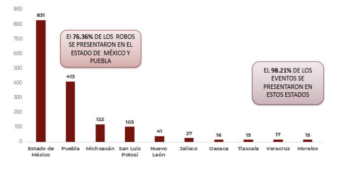 • El 93.46% de los eventos se denunciaron en estos 10 Estados.