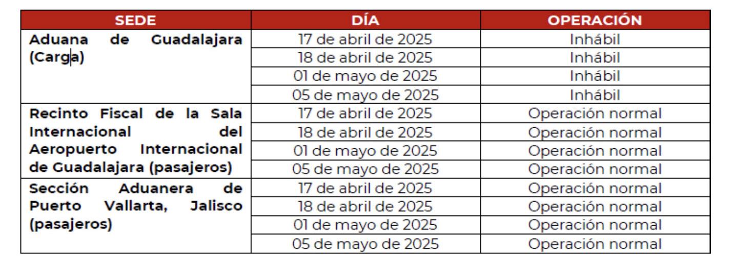 • DÍAS INHÁBILES EN LA ADUANA DE GUADALAJARA