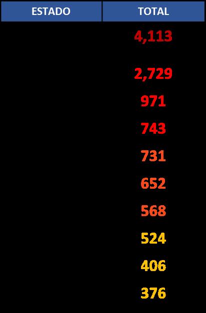 • 92.72% de los eventos se denunciaron en estos 10 Estados.