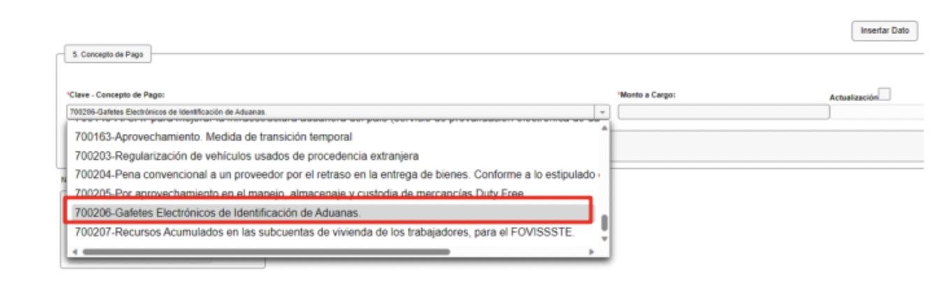 • ACTUALIZACIÓN EN “CONCEPTO DE PAGO” PARA GENERAR LÍNEA DE CAPTURA – GAFETE ELECTRÓNICO DE IDENTIFICACIÓN.