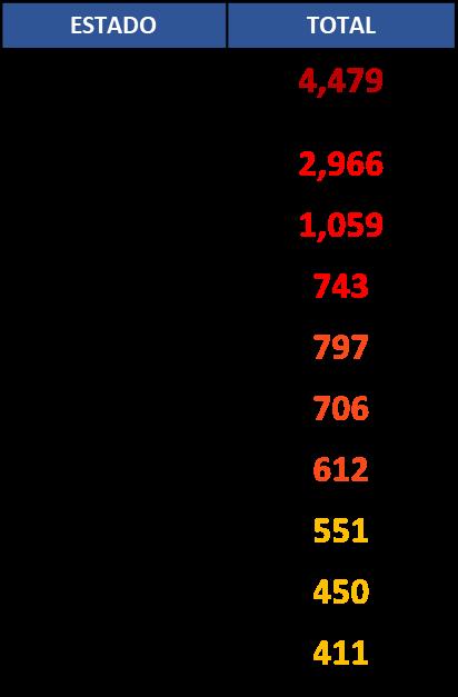 TOP 10 ESTAD0S DE MAYOR INCIDENCIA