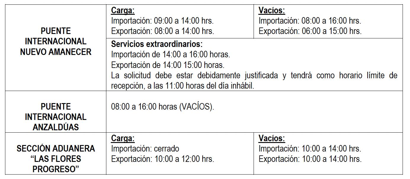La Administración de la Aduana de Reynosa nos ha informado mediante boletín informativo 01/2024, los días inhábiles y/o festivos del año 2024 y el horario de servicio; se hace mención que estos únicamente surtirán efecto en la operación del área de carga, vacíos y oficinas administrativas dependientes de la Aduana:
