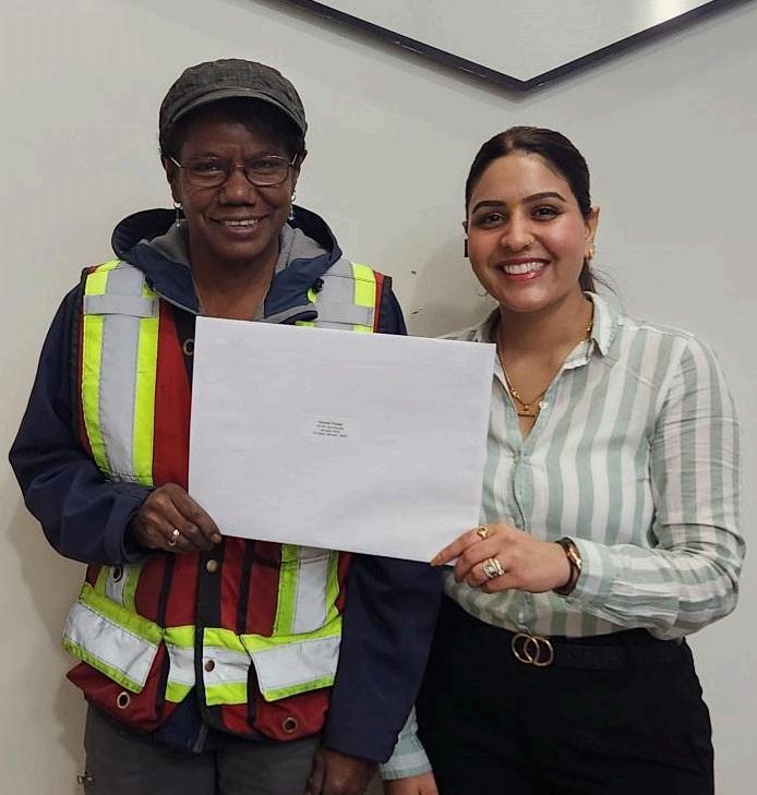 Conrad Douglas, superviseur de la sécurité et de la conformité, à gauche, a remis au propriétaire-exploitant Waqas Waheed Muhammad une lettre de remerciement et une carte-cadeau pour son service exemplaire et son dévouement à maintenir les normes de sécurité et de conformité les plus élevées tout au long de son mandat au sein de l’entreprise.