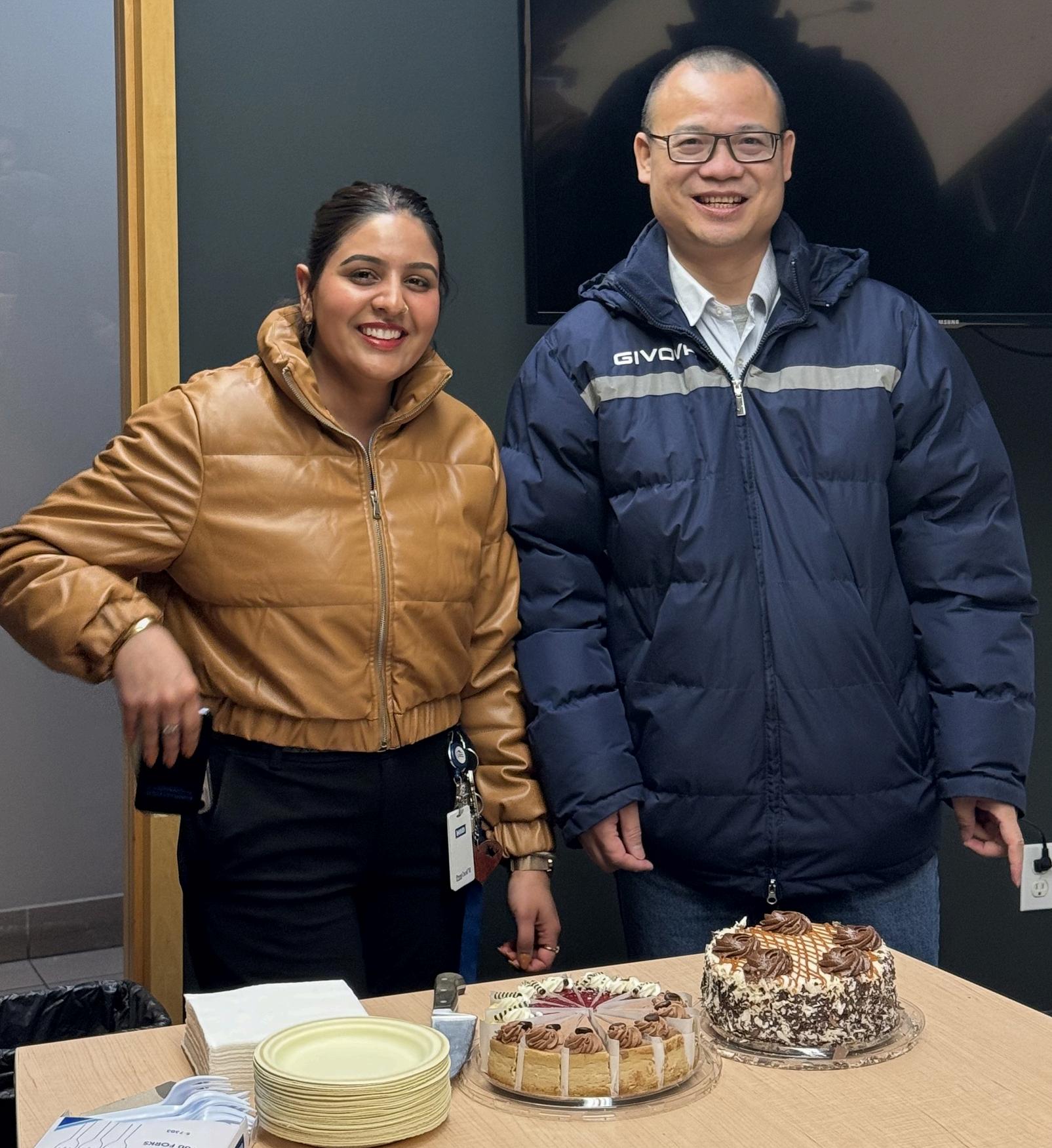 L’équipe du terminal d’Edmonton a célébré en janvier les anniversaires de la superviseure des opérations Jyoti Khosla et du coordonnateur des comptes Howard Lu.