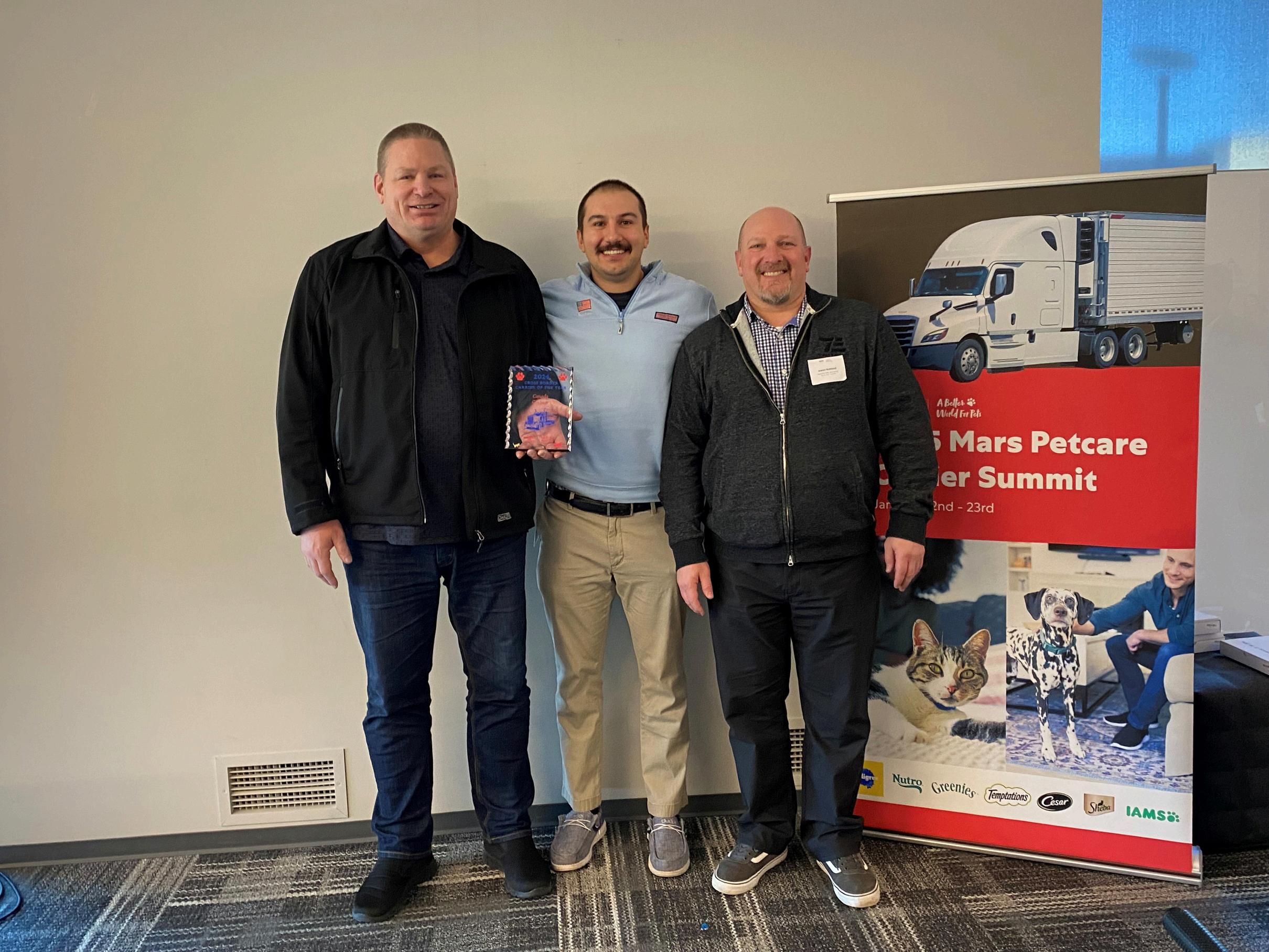 Sur la photo, de gauche à droite : Michael Duoma, directeur principal des opérations, Canada Cartage, Michael Ventura, directeur de l'approvisionnement stratégique - Transport, Mars Incorporate, et Aaron Ruhland, directeur des opérations, Canada Cartage